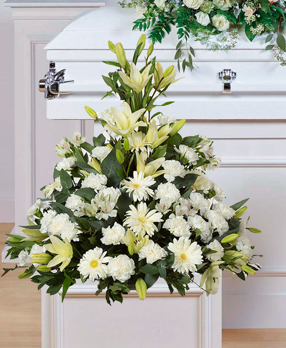 Este centro de flores blancas para tanatorio está realizado con flores blancas frescas de gran calidad. Somos floristas expertos, y contamos con una gran cobertura de trabajadores para llevar a cabo envíos de flores urgentes, por lo que, haremos un trabajo excelente para satisfacer las necesidades de nuestros clientes y llevar a cabo sus pedidos de flores para tanatorios de una forma satisfactoria.